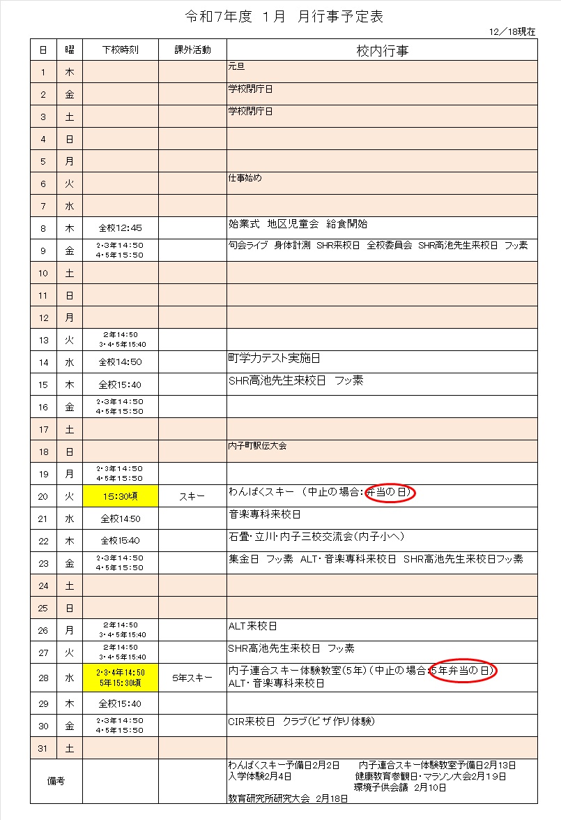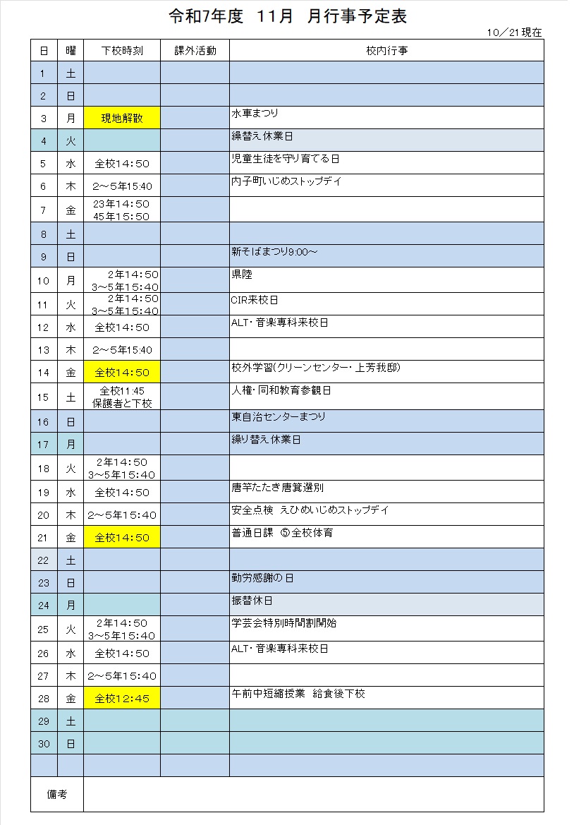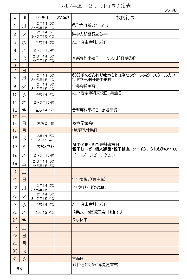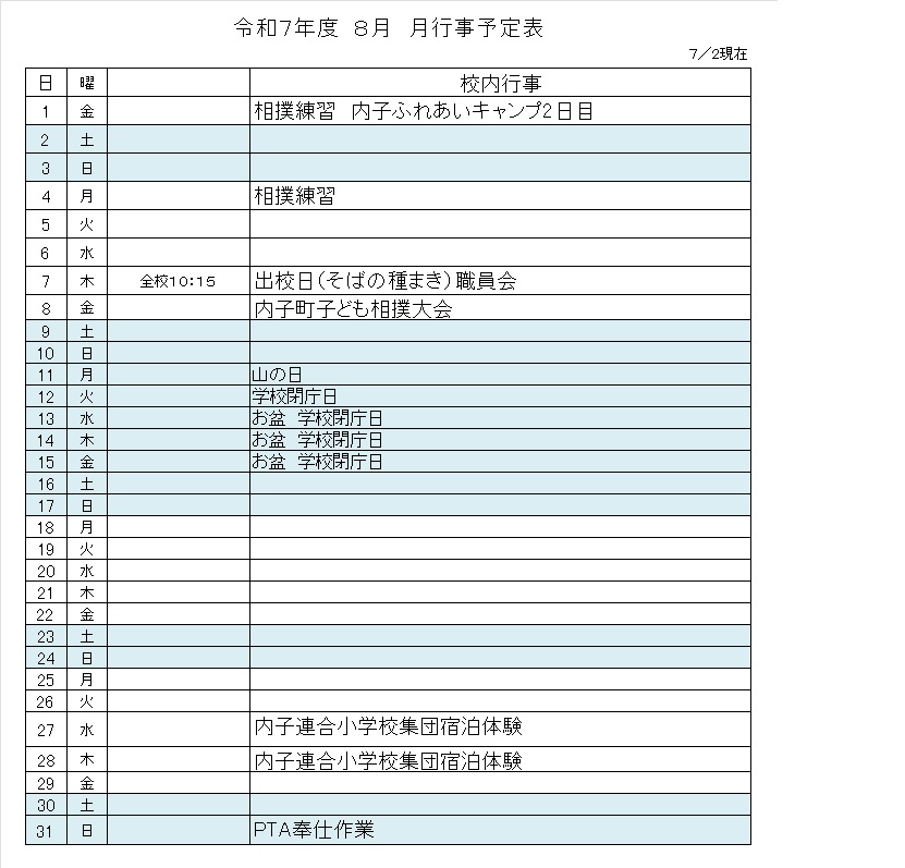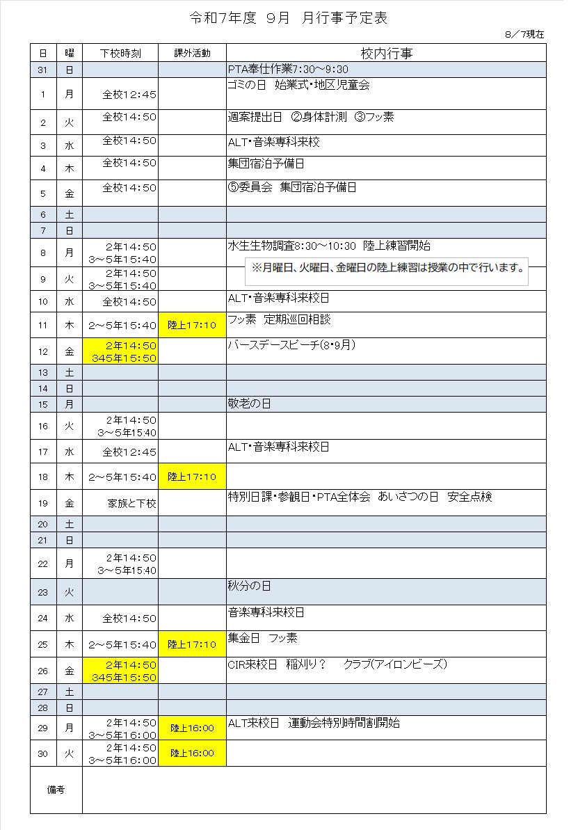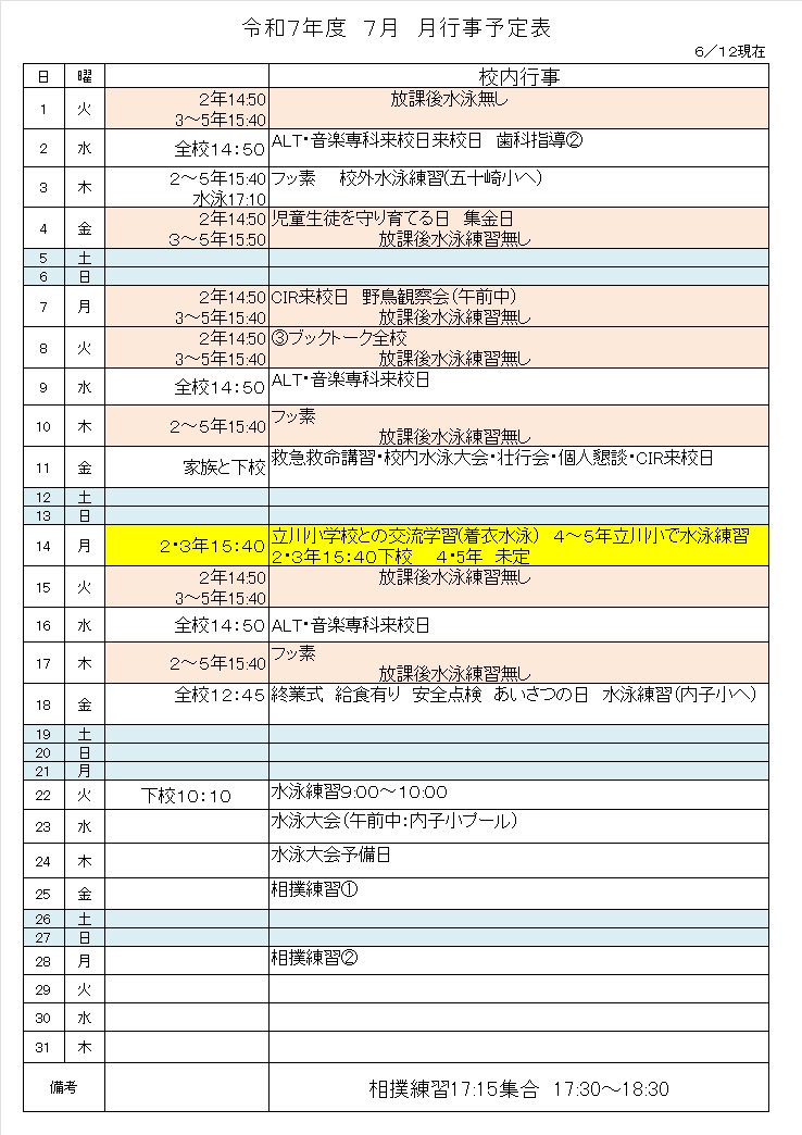 令和7年度行事予定